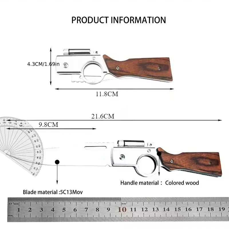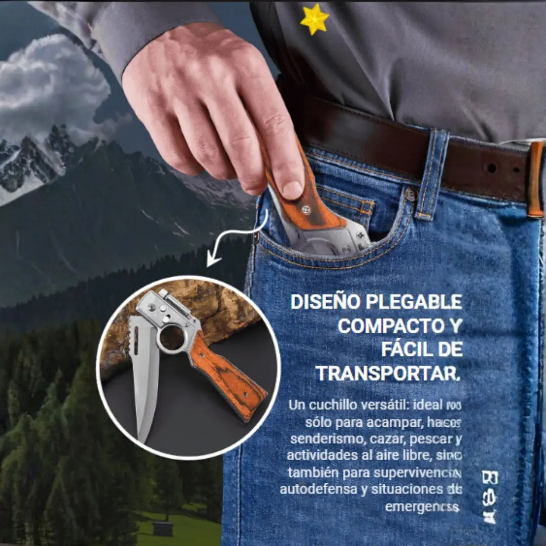 Con su hoja ultra afilada y diseño plegable, este cuchillo te acompañará en campamentos, caminatas, pesca, caza o emergencias. Y sí, ¡hasta tiene una lámpara integrada para esos momentos críticos!