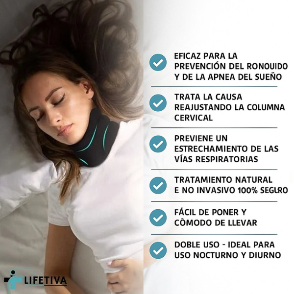 El Silenz™ es un innovador soporte cervical que realinea la columna mientras duermes. Al mantener el cuello en una posición natural, evita que las vías respiratorias se estrechen, lo que elimina los ronquidos desde la raíz del problema.